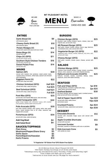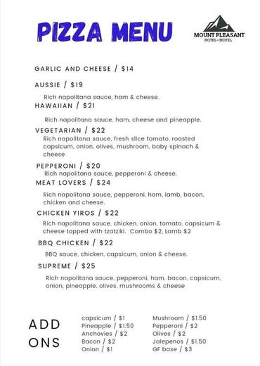 At Mount Pleasant Hotel Motel, we take pride in offering a diverse range of dining options. From our on-site restaurant serving local produce to our country style bar with its warming fireplace we have something for every palate. Our chefs use only the freshest ingredients to create delicious meals that will leave you craving for more.